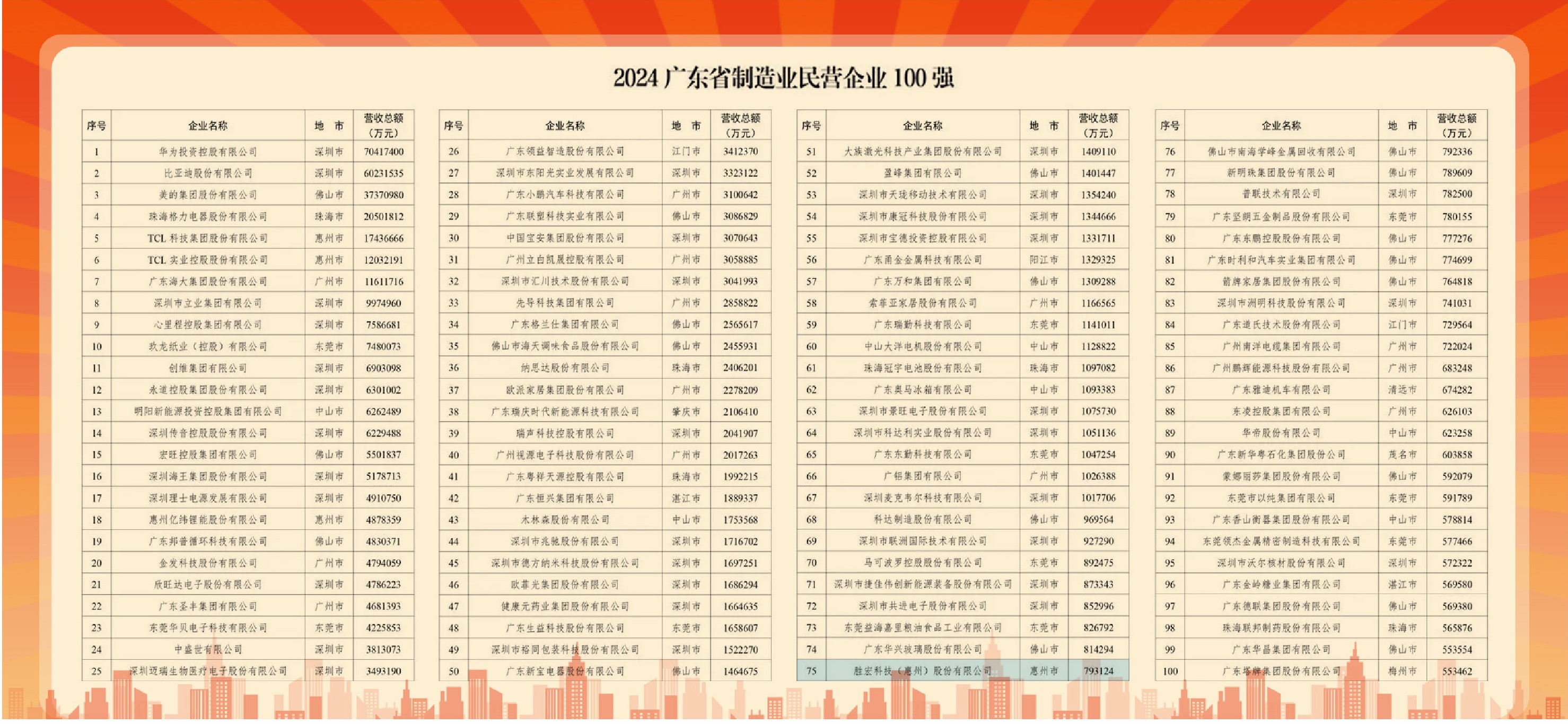 东升国际官网科技荣登2024广东省制造业民营企业100强榜单