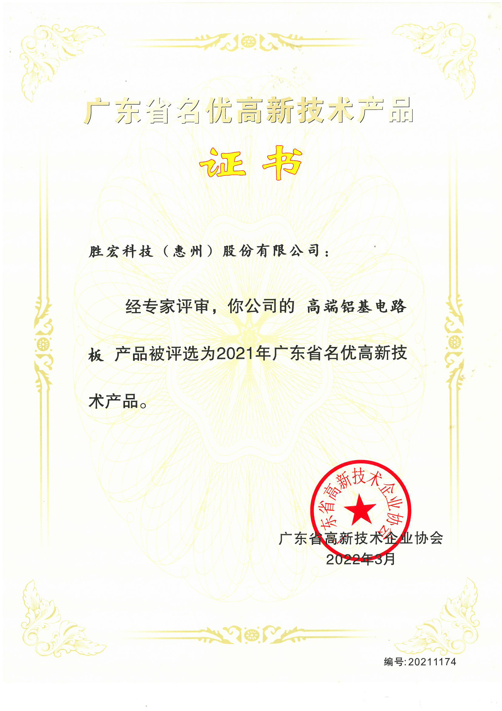 “高端铝基电路板”名优高新技术产品证书